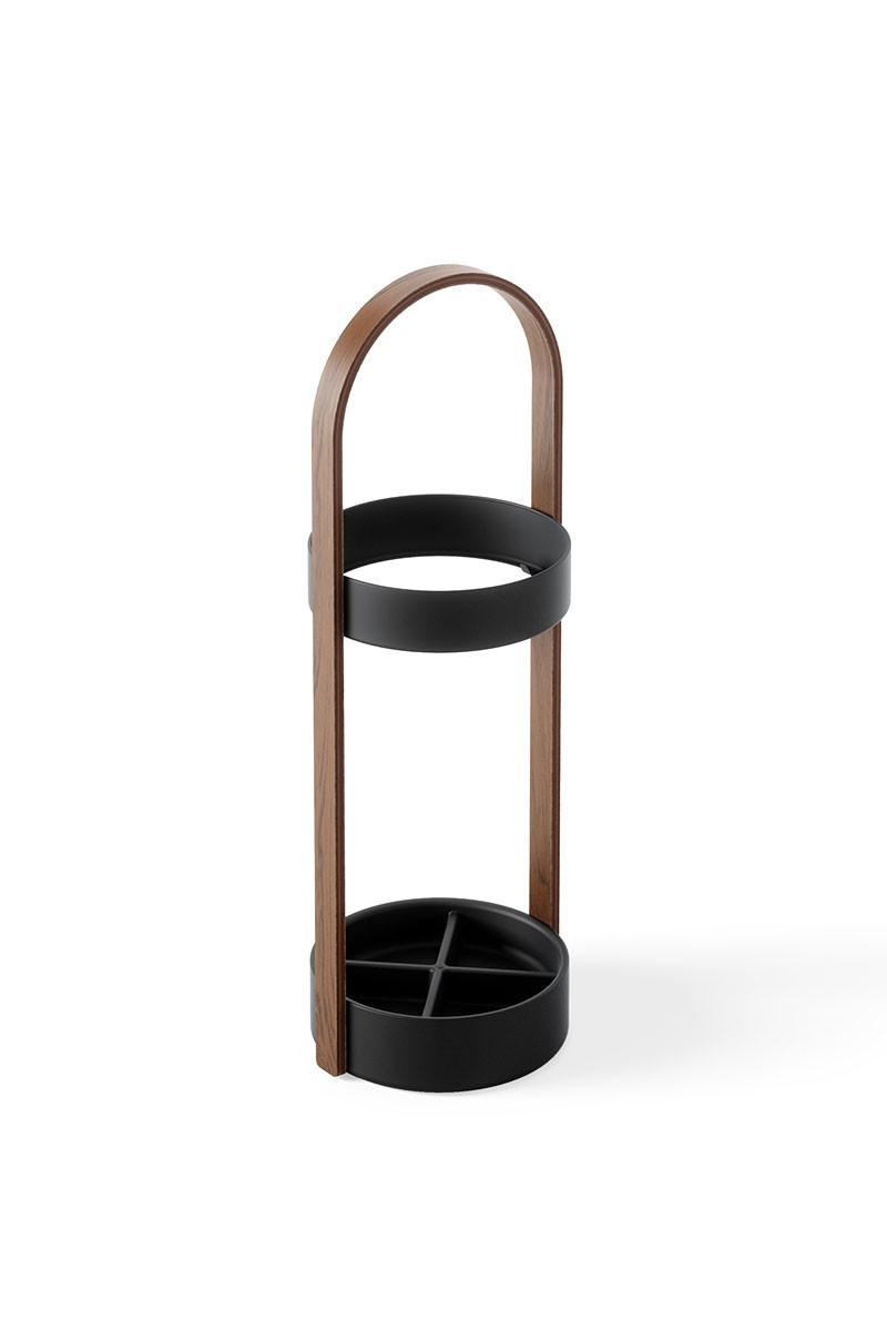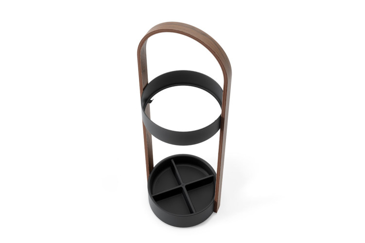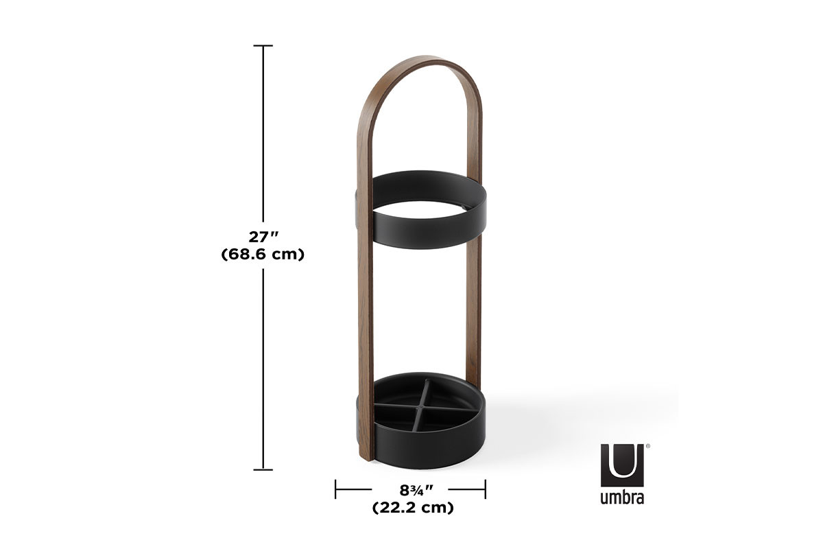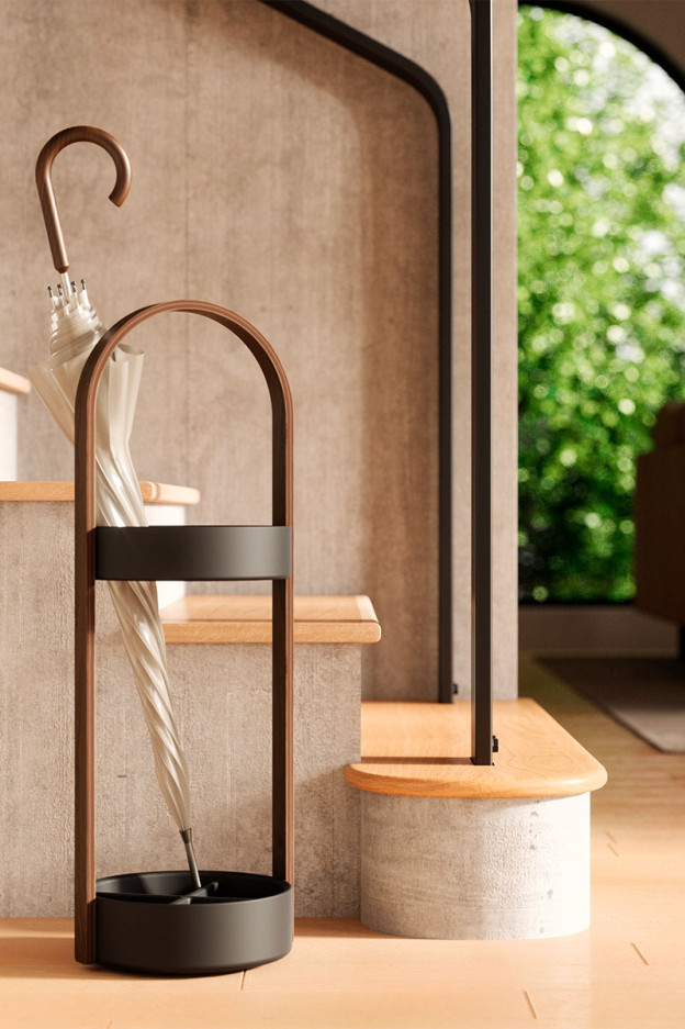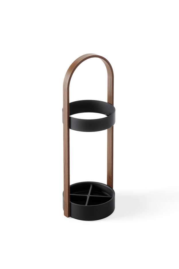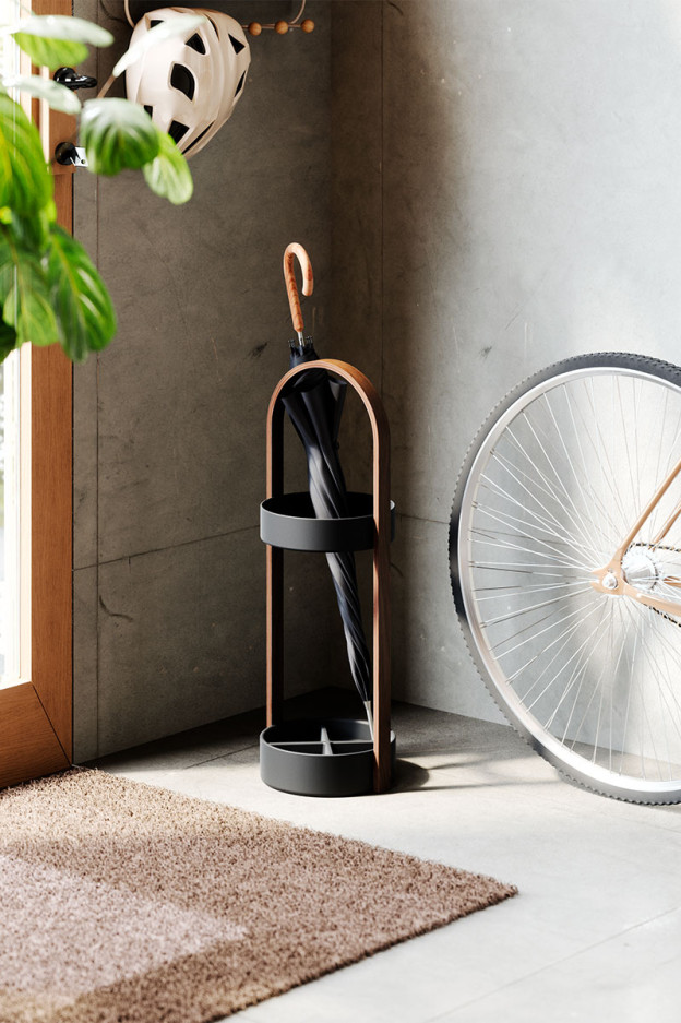 Bellwood es un paragüero que presenta un diseño atractivo y moderno, combinando el acero con la madera. Este porta paraguas es ideal para los que son grandes ya que sus compartimentos están diseñados para estos, mientras que en el anillo superior hay unos ganchos para colgar los paraguas de menor tamaño.