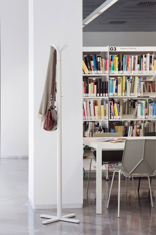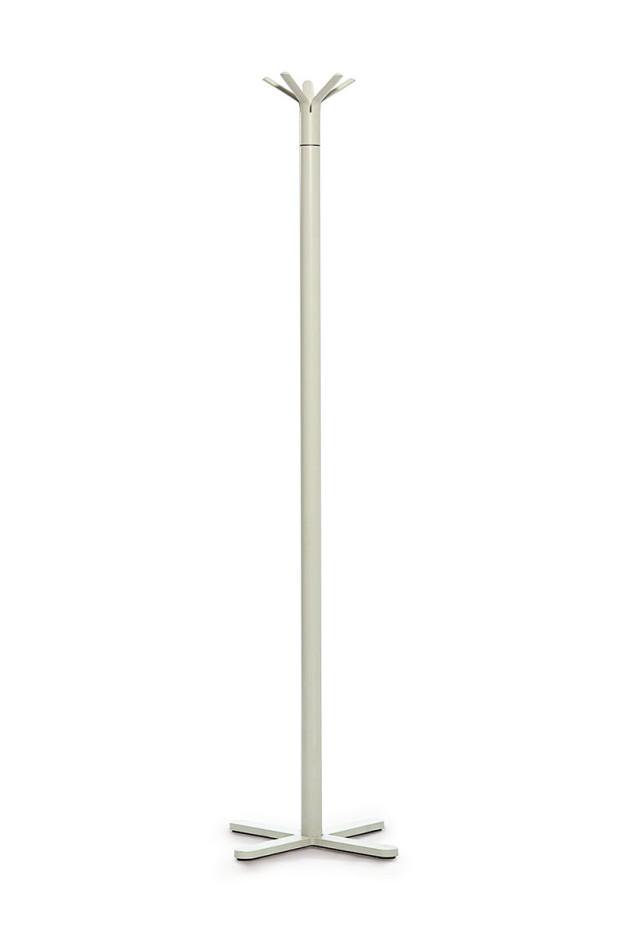 Perchero de pie con notable carácter formal, pensado para cumplir su función de uso y para enfatizar su presencia con elegancia, color y discreción. Adecuado para la casa, la oficina y espacios de recepción. Tubo de aluminio y base de fundición de hierro pintados y percha superior de poliamida. Medidas: 48 cm diámetro x 175 cm altura. Diseño de Joan Gaspar.