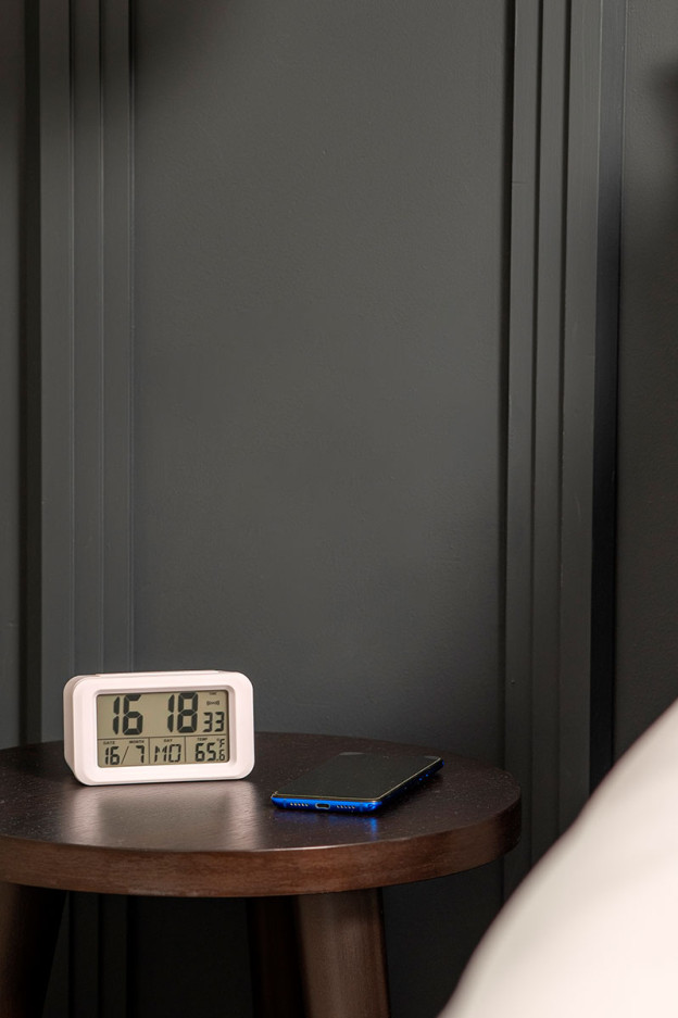 Este reloj despertador es un imprescindible en cualquier mesilla de noche. El diseño de este es una combinación entre lo clásico y lo moderno. Gracias a este reloj y a todas las funciones que dispone podrás programar y posponer la hora de alarma, además incluye luz nocturna, la fecha y hora, y la temperatura. Está fabricado con goma ABS.