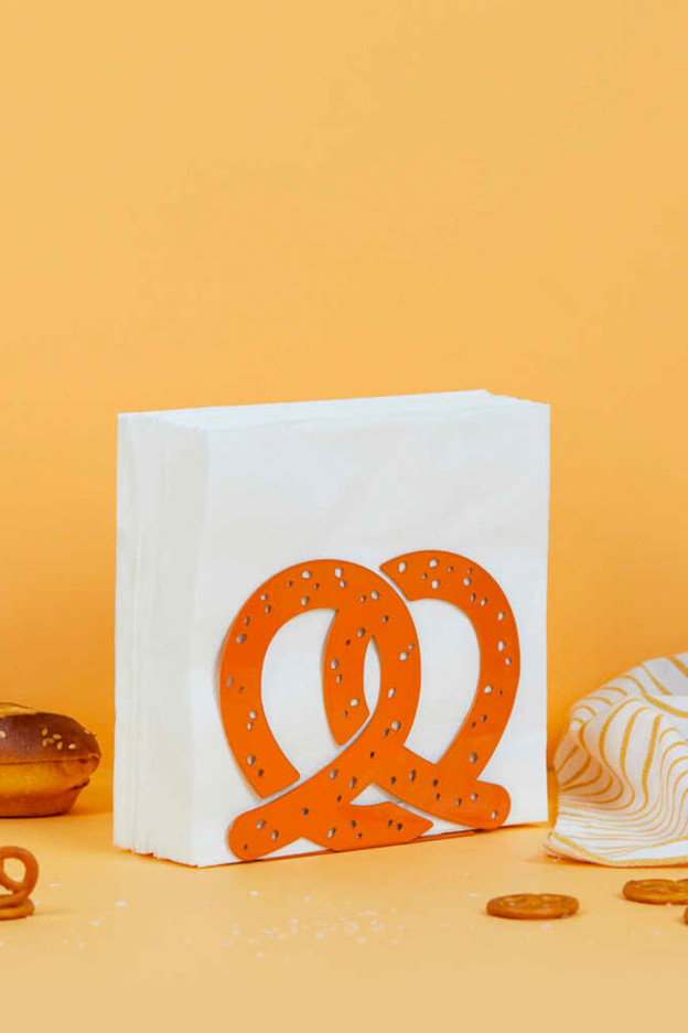 Dale un toque divertido y original a tu mesa con el servilletero Pretzel. Su diseño encantador en forma de pretzel, no solo es un accesorio decorativo, sino que también es práctico. Su tamaño es idóneo ya que te permitirá colocar hasta 30 servilletas de papel.