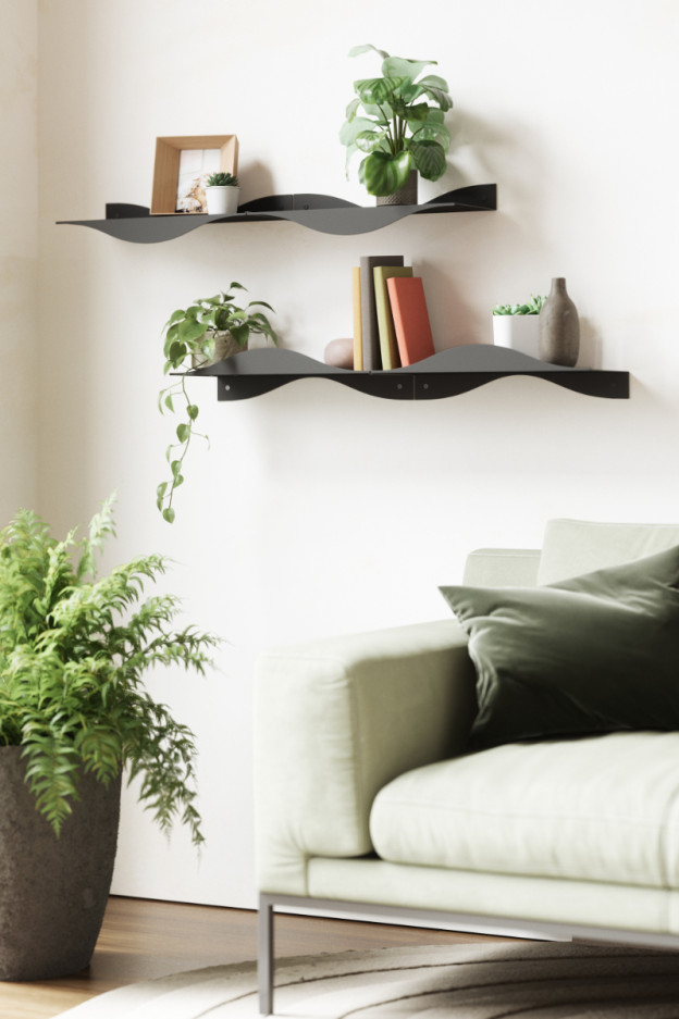 El set de dos estantes Surf es una propuesta que combina diseño y funcionalidad en perfecta armonía. Su silueta con una sutil ondulación aporta un toque dinámico y elegante que transforma cualquier espacio en un punto focal lleno de estilo.