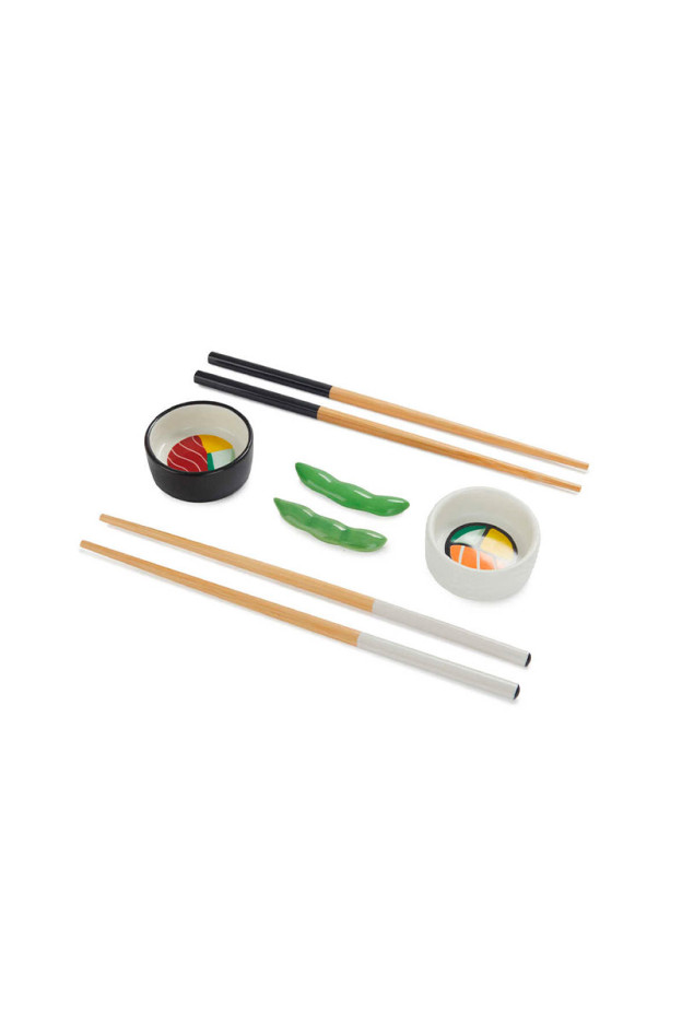 Disfruta la auténtica experiencia japonesa en casa con el set de sushi Oishii. Este elegante set incluye todo lo necesario para compartir un momento especial, 2 bowls de cerámica para salsa de soja (20 ml cada uno), 2 pares de palillos de bambú y 2 soportes a juego. Su diseño sofisticado y materiales de alta calidad combinan funcionalidad y estilo.