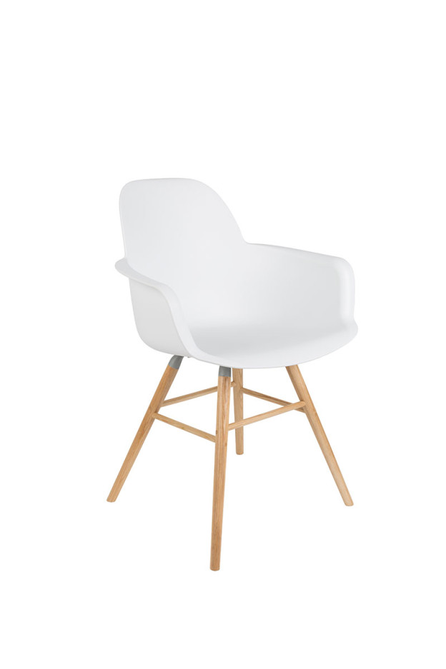 Trabajar y relajarse, eso consigue la silla Albert Kuip, con sus cómodos brazos. En seis colores de moda, sus asientos son 100% de polipropileno y patas de madera de fresno. Medidas: 59x55x81,5 cm.