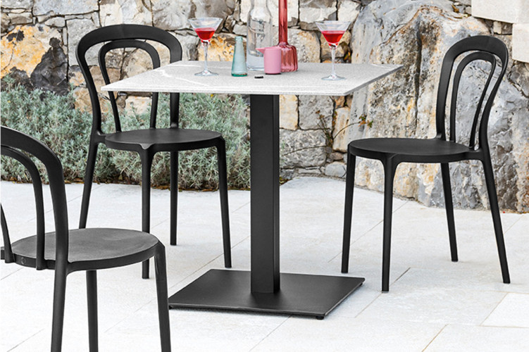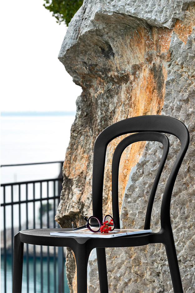 Silla altamente resistente con estructura de polipropileno disponible en varios colores. Apta para uso interior y exterior. Apilable hasta cuatro sillas.