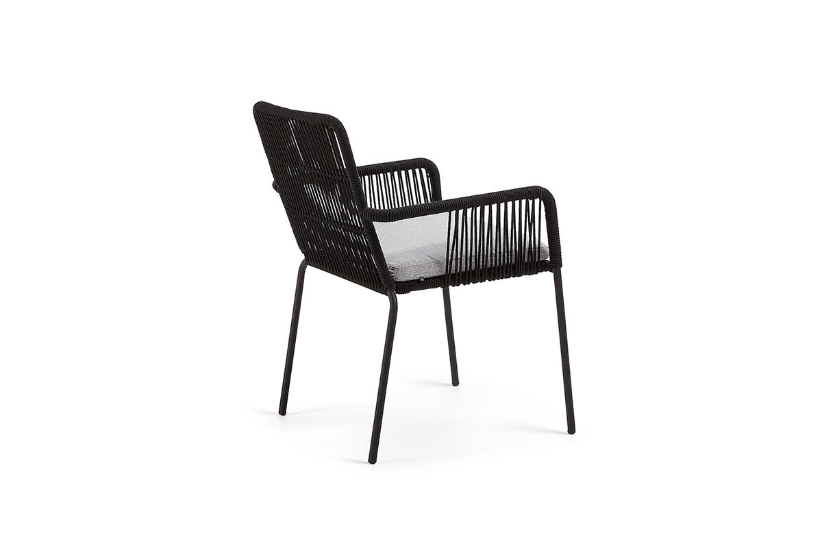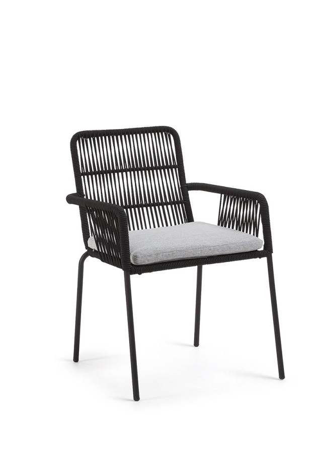 Nuestra silla Corda tiene la estructura de acero galvanizado en color negro. El asiento y el respaldo son de cuerda trenzada a mano.