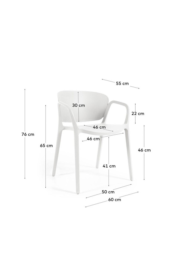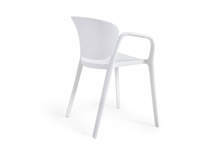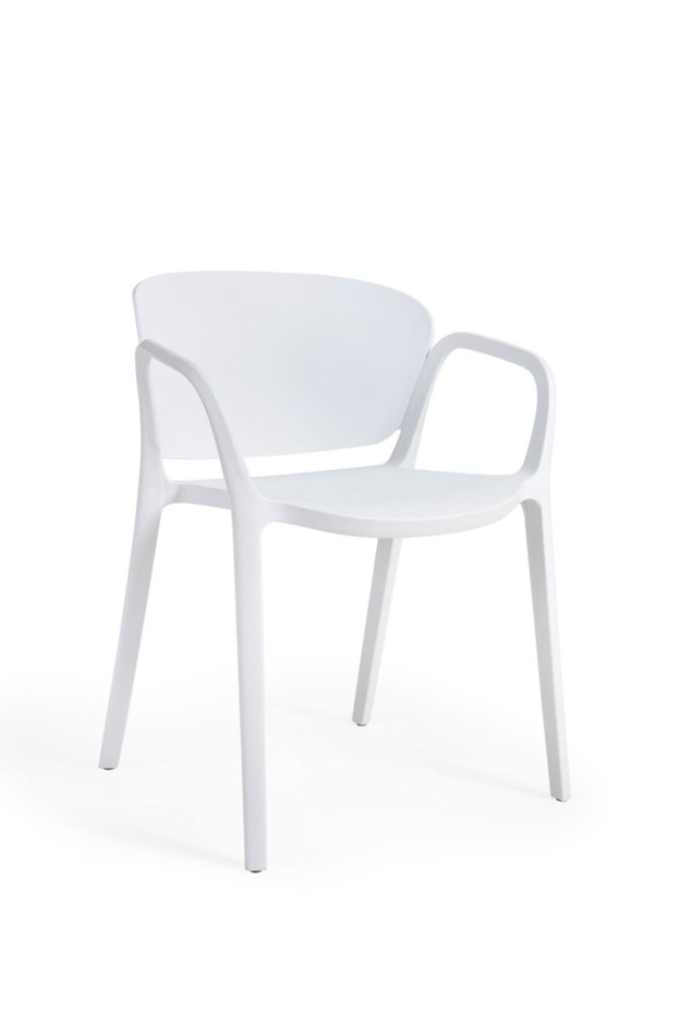 Nuestra silla de exterior Sonia es de polipropileno reciclado con tratamiento resistente a los rayos UV. Apilable.