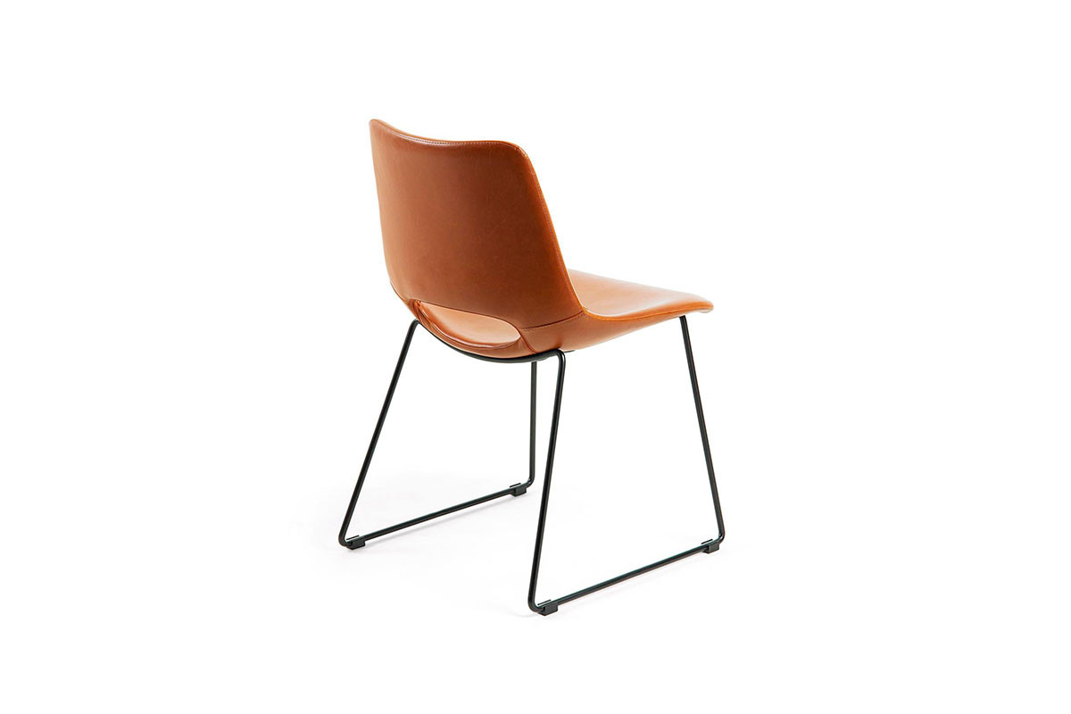 Estructura de acero pintado en color negro, asiento y respaldo tapizado en polipiel. Medidas: 49x55x78 cm.