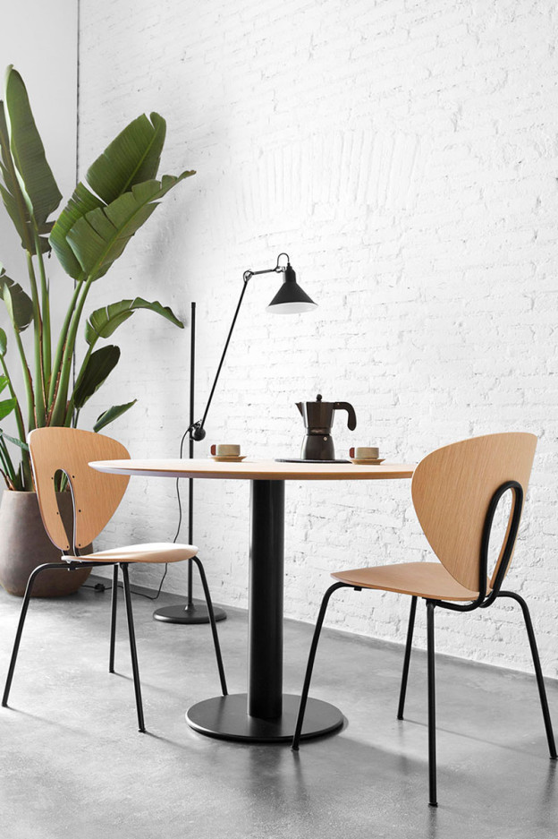 Ligera y cómoda, gracias a su generoso respaldo en forma de globo que Silla con estructura de tubo de acero cromado en brillo o mate, lacado epoxy en color blanco o negro o acero inoxidable. Asiento y respaldo de maderas naturales moldeada teñida en varios acabados o en polipropileno en varios colores. Diseño de Jesús Gasca.