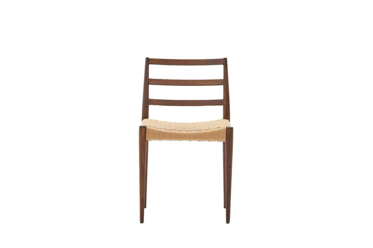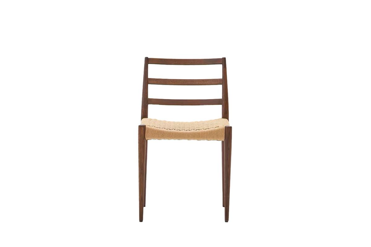 La estructura de la silla está fabricada en madera de maciza de roble, disponible en dos acabados, natural y nogal.