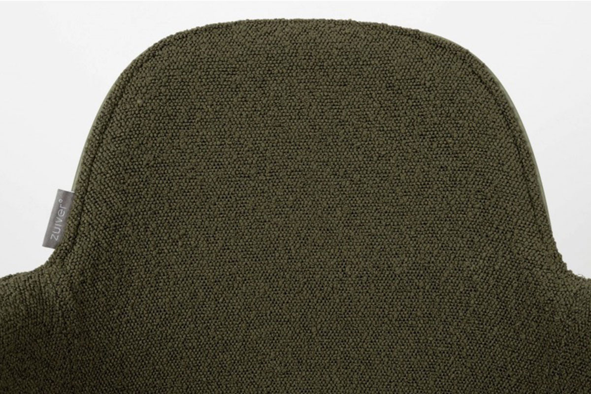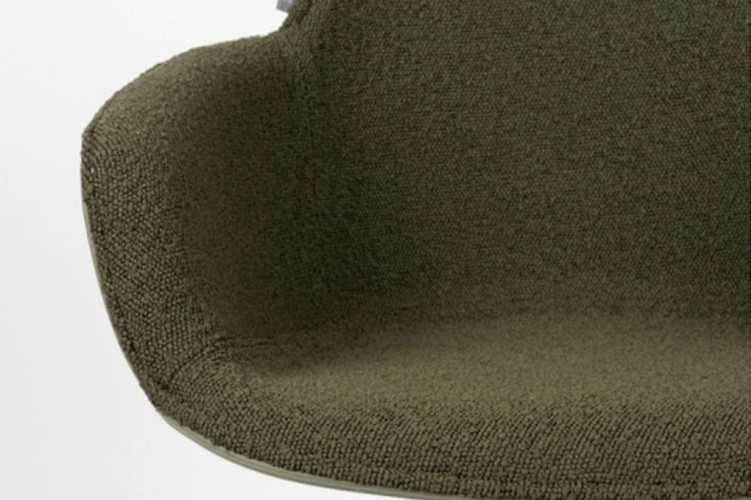 Silla de oficina con brazos, estructura y patas de aluminio arenado. Carcasa de polipropileno rellena de espuma. Tapicería teñida en hilo 100% poliéster.