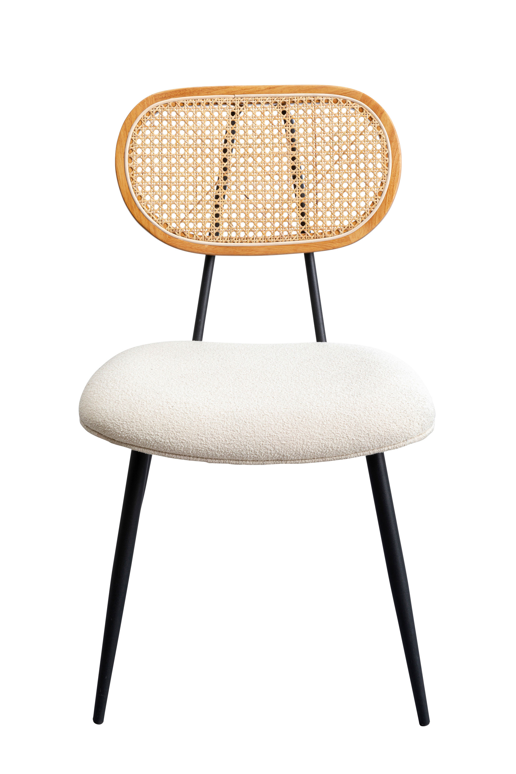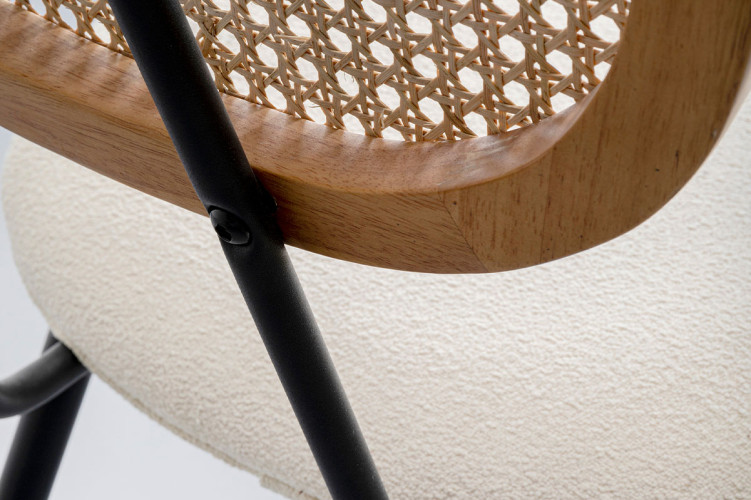 La estructura está fabricada con acero, y el asiento está acolchado para una mayor comodidad, el respaldo está fabricado con rejilla de mimbre.