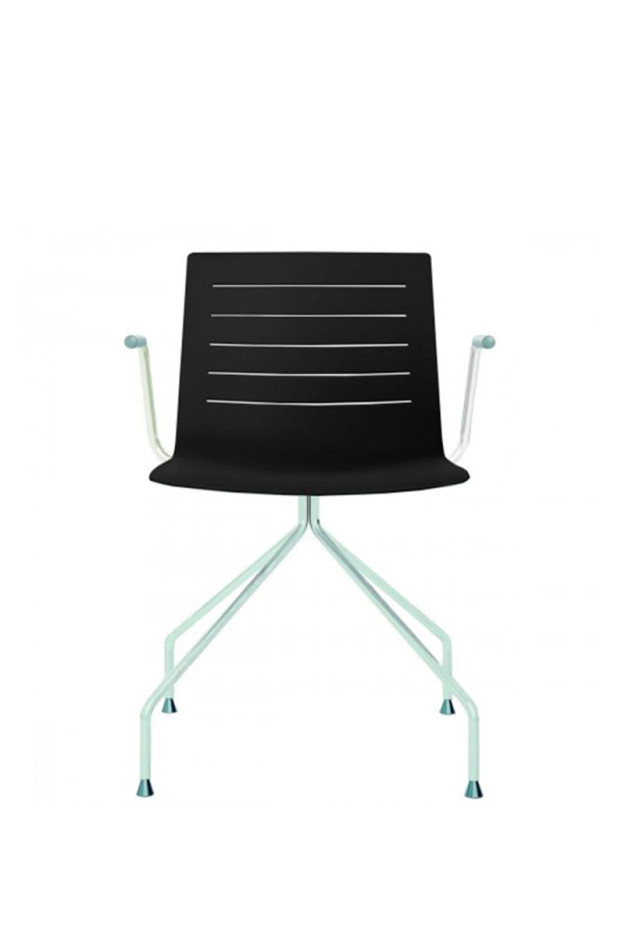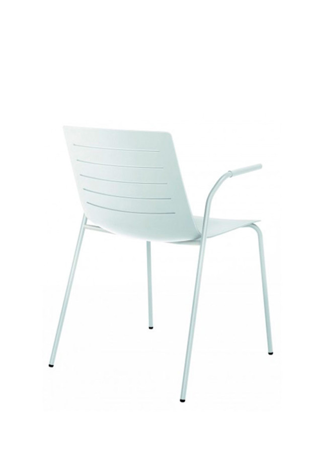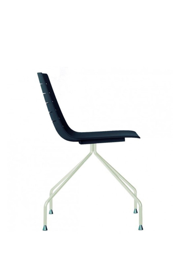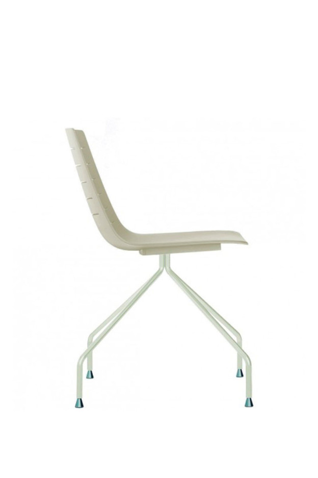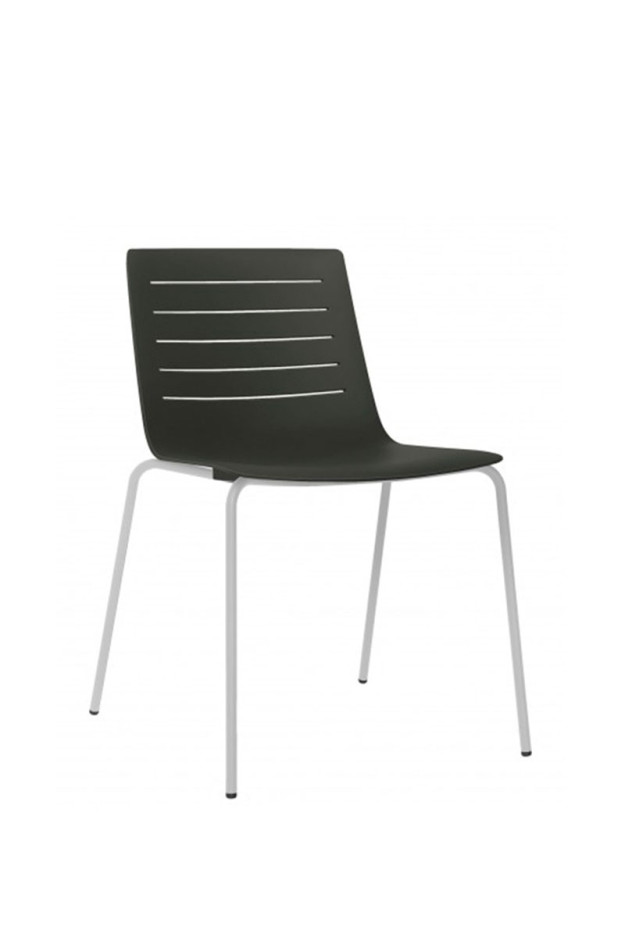 Creada para su uso interior, su carcasa está fabricada mediante el proceso de inyección en fibra de vidrio y polipropileno. La estructura de su gran variedad de patas es de acero pintado de blanco o negro.