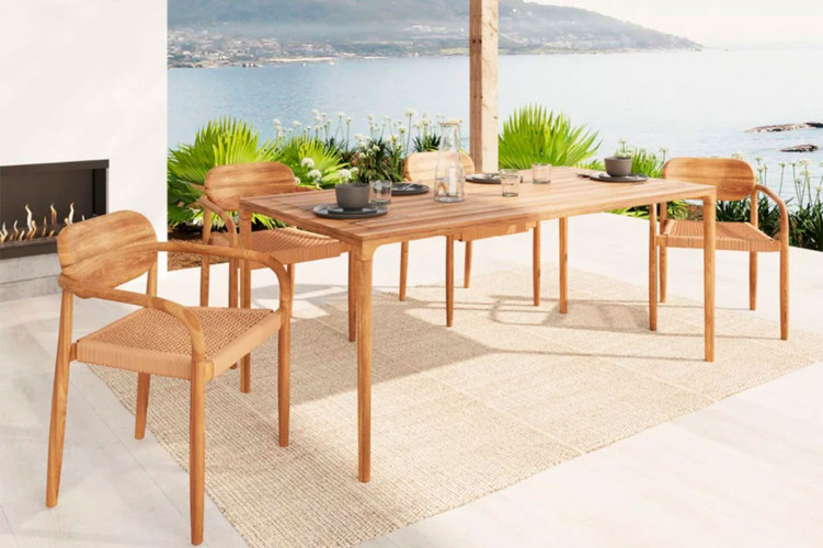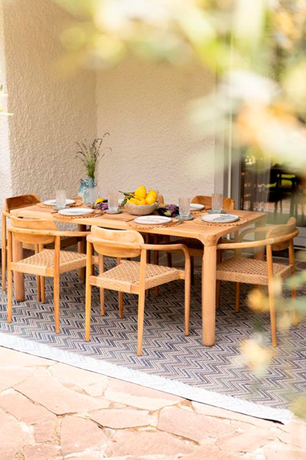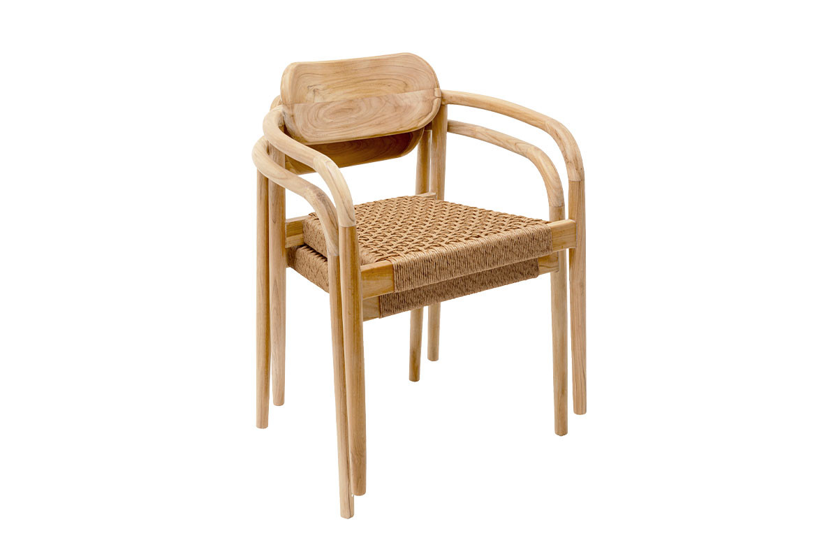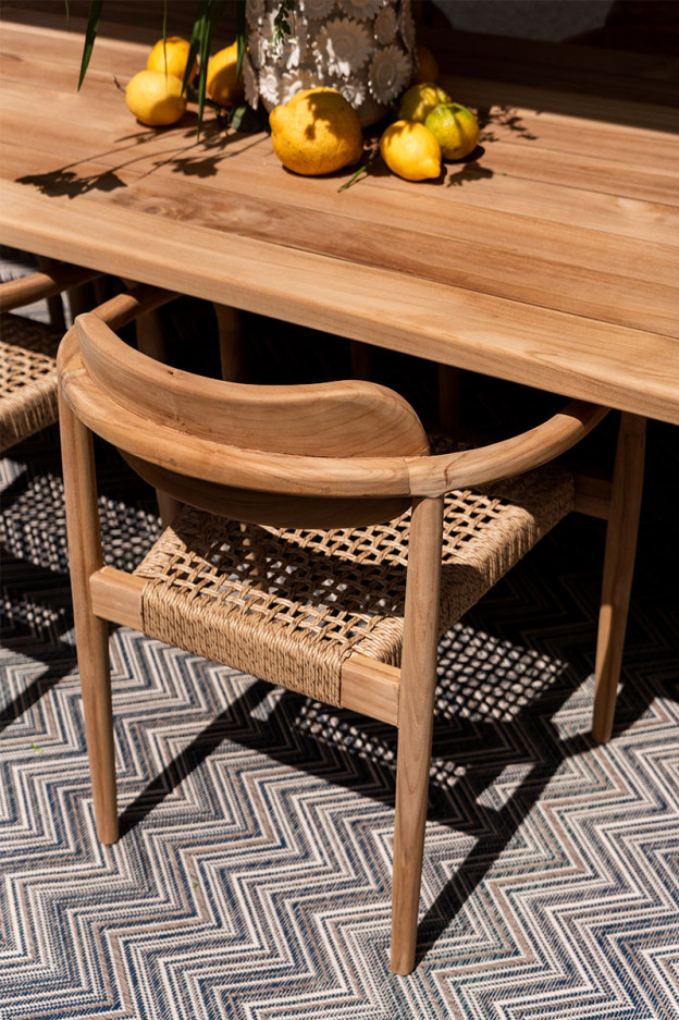 Su estructura fabricada en madera de teca y su asiento tejido a mano, son reconocidos por su resistencia a la intemperie, su durabilidad y confort.
