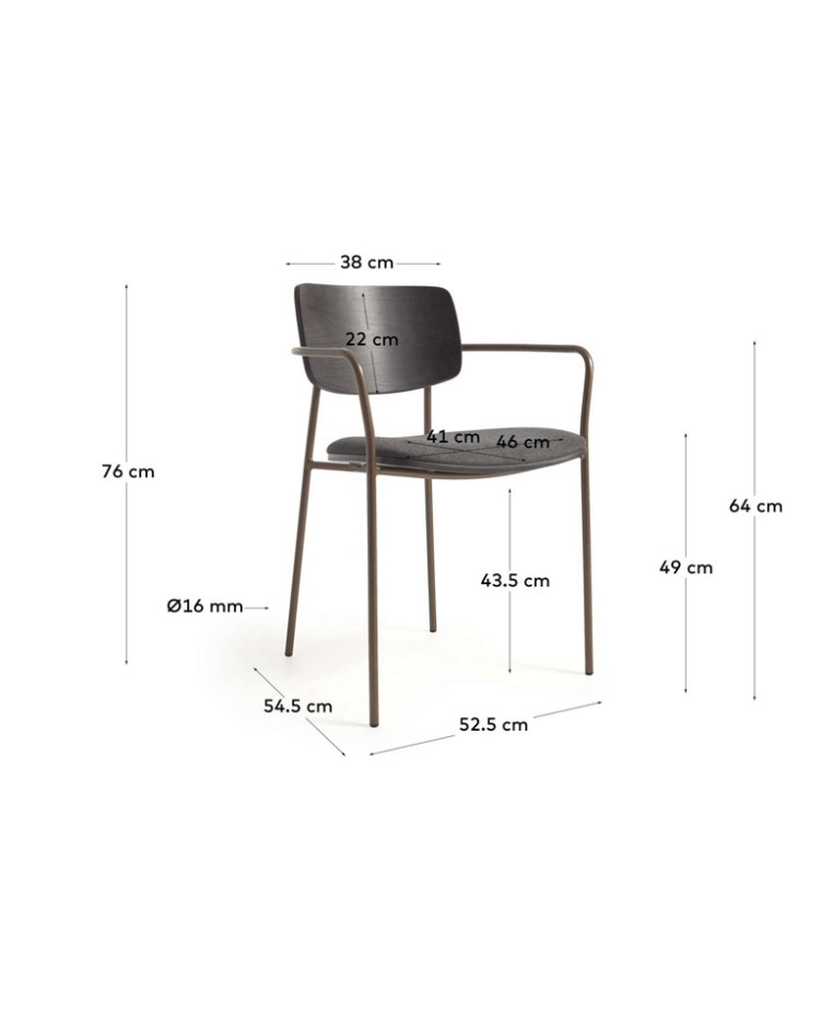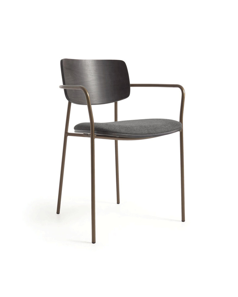 La silla Sur de líneas clásicas y chapada en roble, nogal o fresno, cuenta con patas de metal en diferentes acabados. Es ideal para incluir en el comedor o para completar la decoración de cualquier estancia.
