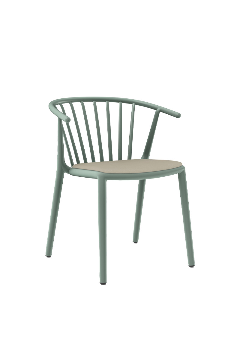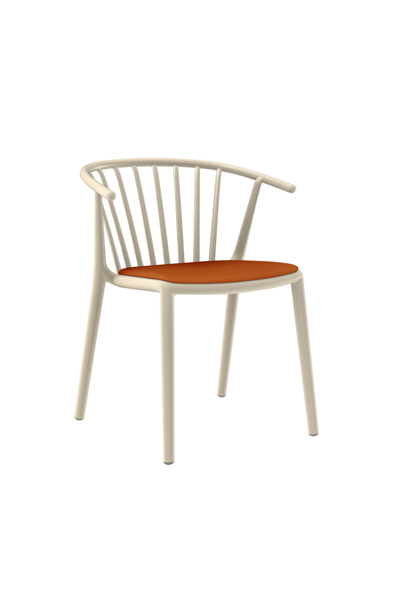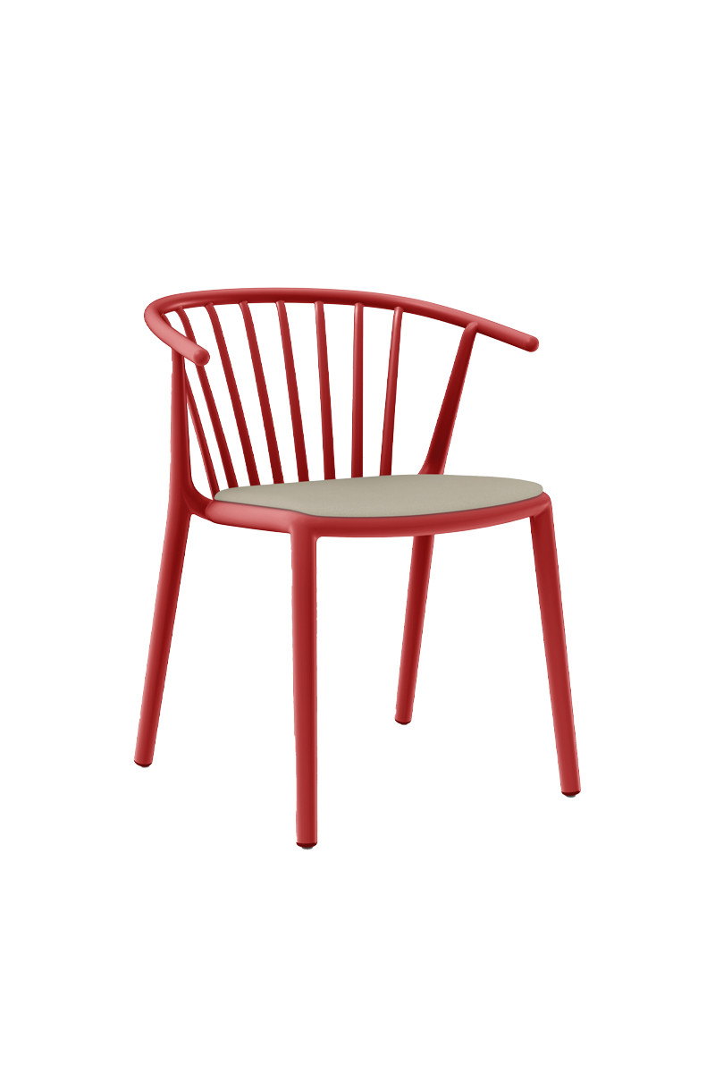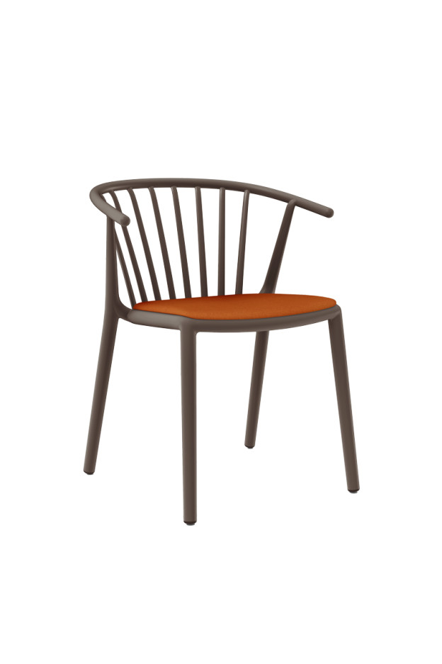 La silla Woody con asiento tapizado es un homenaje a la idea de la silla de listones tradicional, con el concepto de ser una silla totalmente actual. Sus formas suavizadas con curvas pueden dar una idea inspiradora de su origen más orgánico.