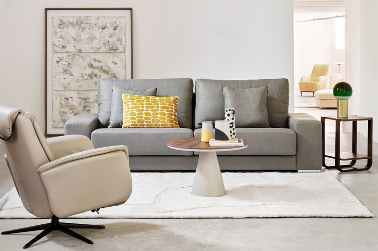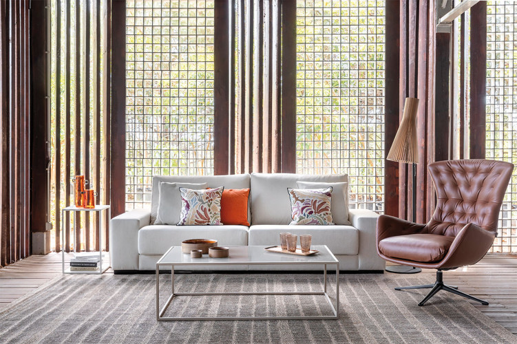 Este sofá lo puedes crear como más se adapte a tu hogar y tus gustos. Dispone de diferentes medidas, incluyendo la opción de añadir una chaise longue a cualquiera de sus lados para aumentar la comodidad en el sofá. También cuenta con múltiples tapizados para combinar con tu salón.