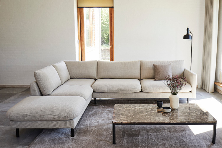 Sus líneas limpias invitan al descanso desde el primer momento, mientras que sus patas aportan un contraste que realza cualquier ambiente.