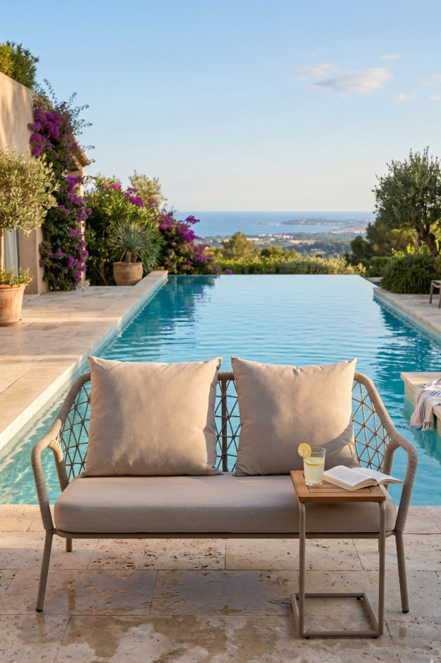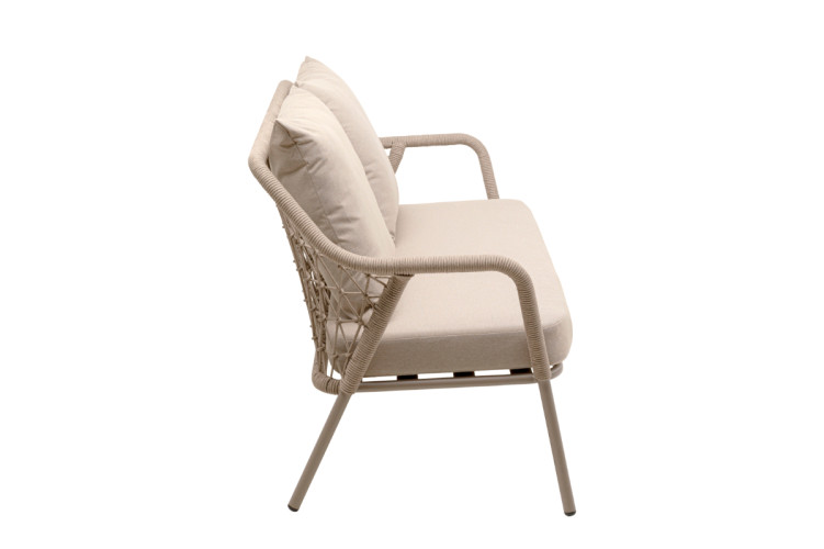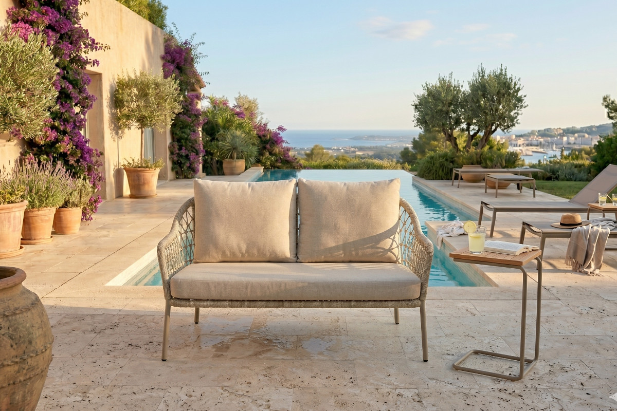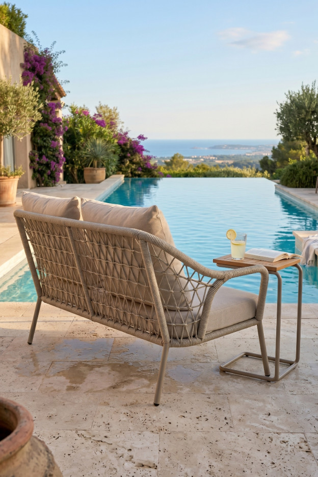 Gracias a sus amplios cojines de asiento y respaldo, proporciona un alto nivel de confort, invitando a relajarse y disfrutar de cada momento al aire libre, ya sea en compañía o en solitario.