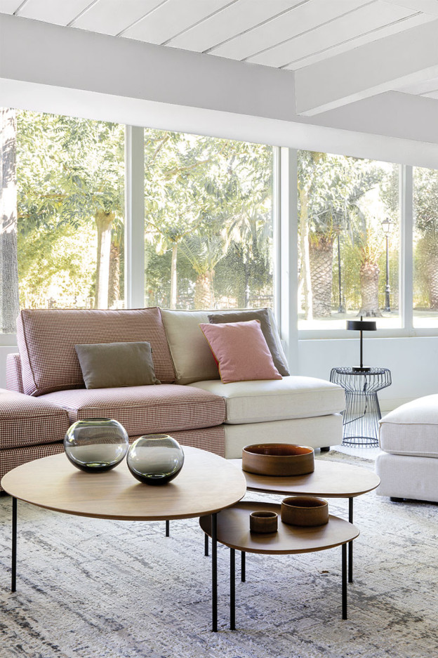 Cada módulo está tapizado en un tejido y color diferente, beige y terracota, para darle un toque más personal.