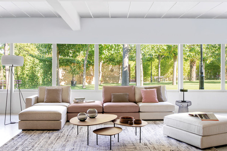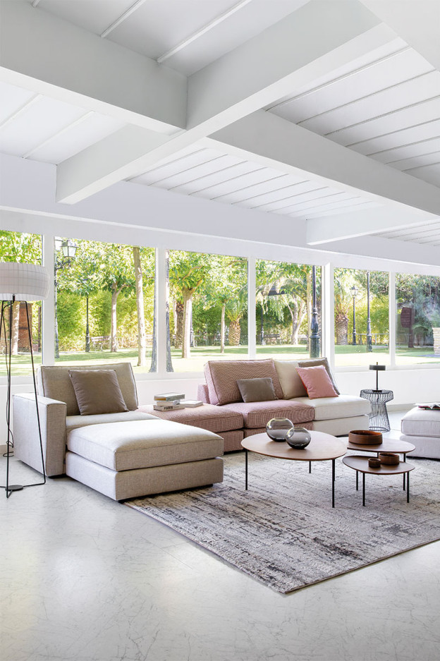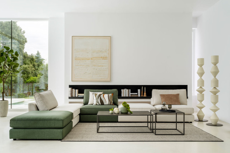 Además de contar con una estructura de madera maciza recubierta de espuma de alta densidad, que no solo es fuerte y resistente sino que aumenta la comodidad del sofá, posee también cojines de asiento rellenos de espuma y viscoelástica. Estas características hacen del sofá New Multipla un auténtico objeto de deseo. Pero aún hay más, y es que es totalmente modular.