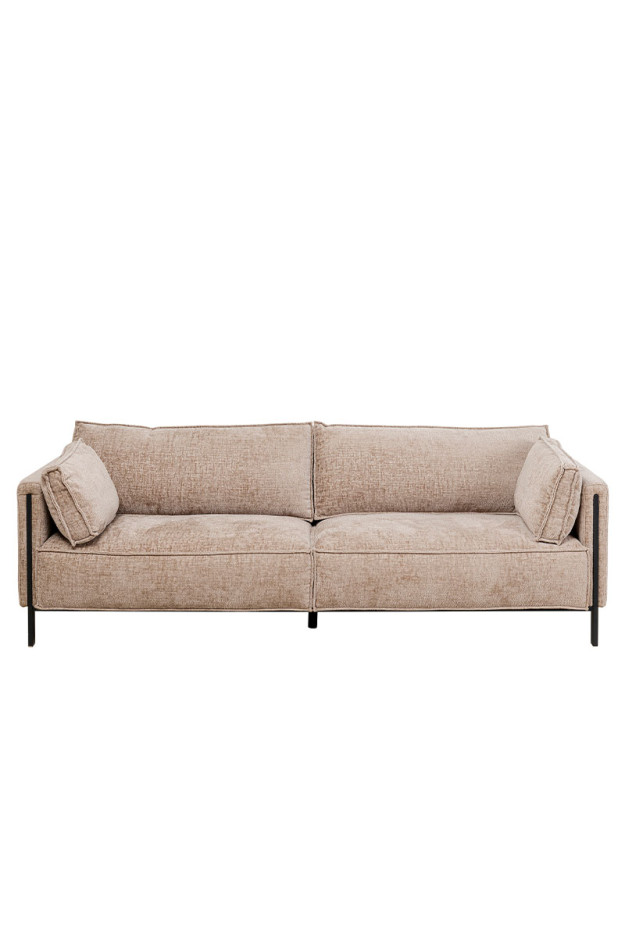 Su estructura se encuentra fabricada en madera maciza, sus patas en acero, lo que le garantiza al sofá durabilidad.