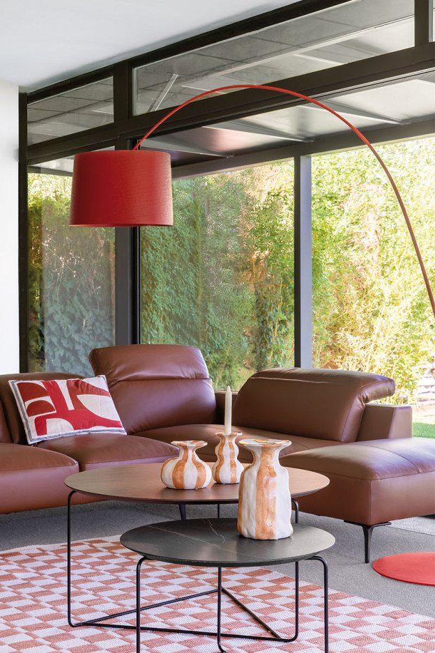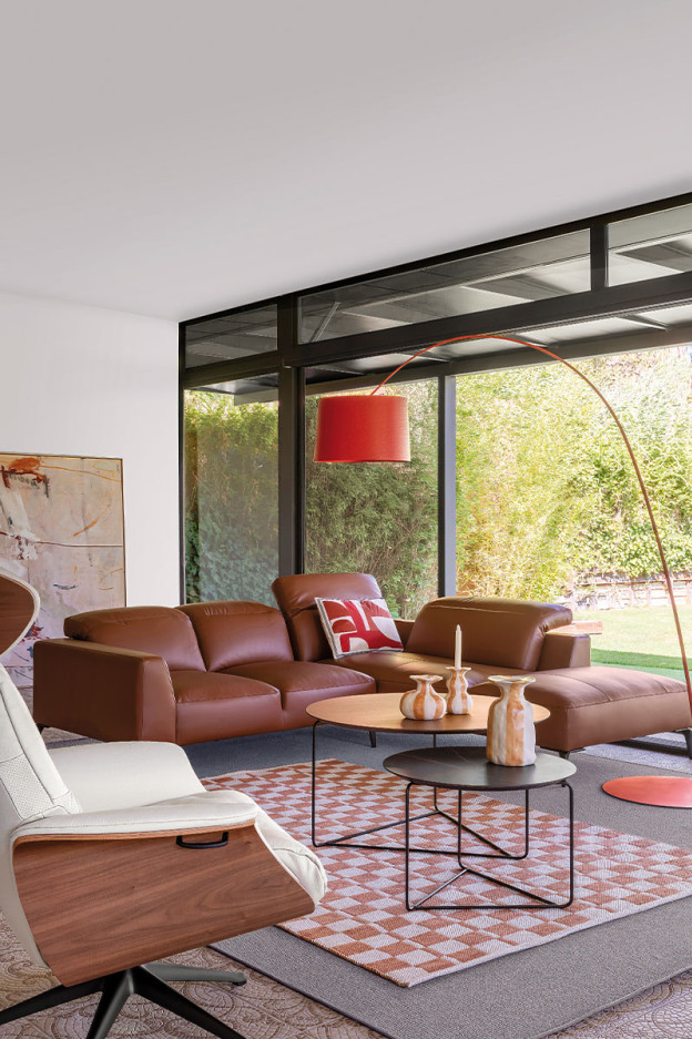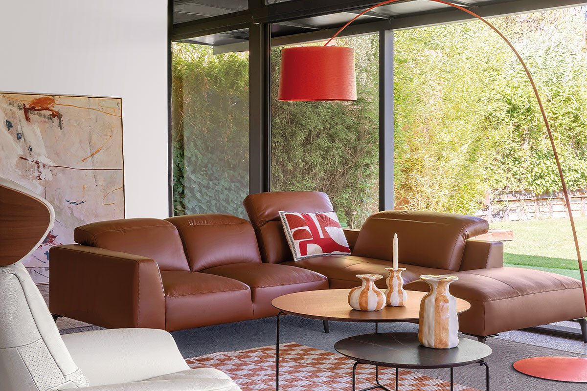 Descubre el sofá Voluzzi con chaise longue derecha, una pieza de diseño elegante que combina confort, estilo y durabilidad. Tapizado en piel color chocolate, aporta un aire sofisticado y atemporal a tu salón.