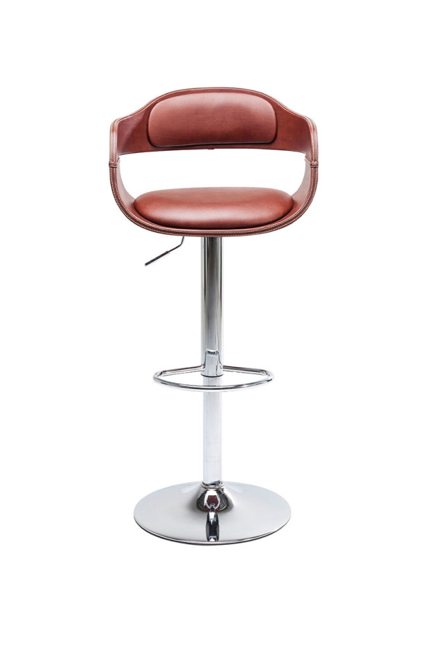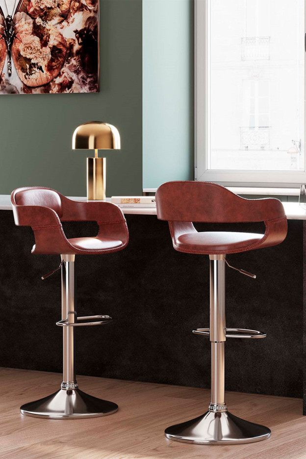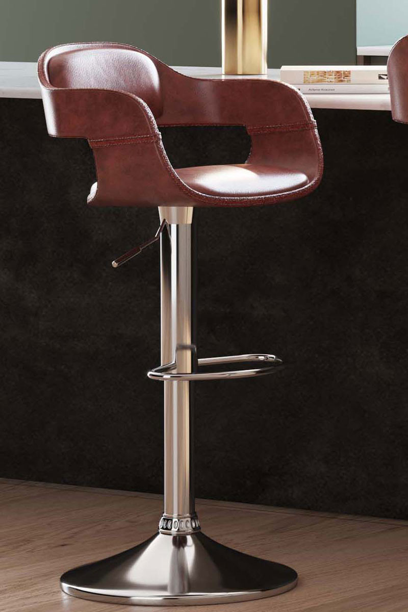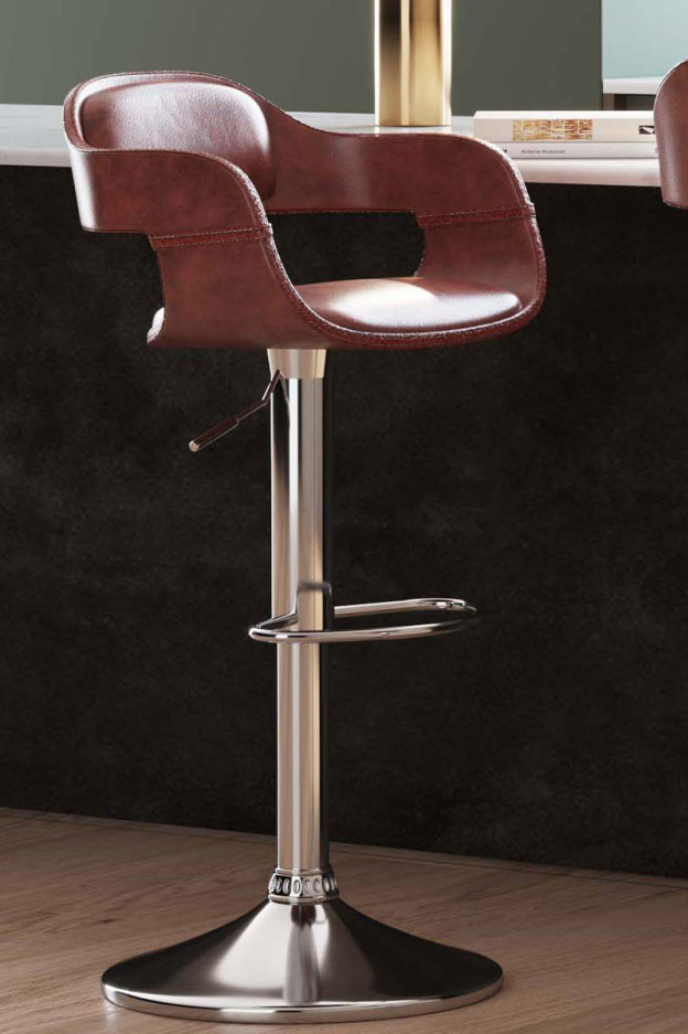 Es regulable la altura del asiento. Cuenta con un reposapiés y además la base es de metal cromado.