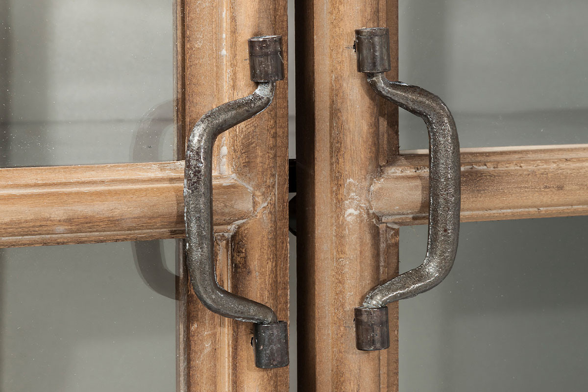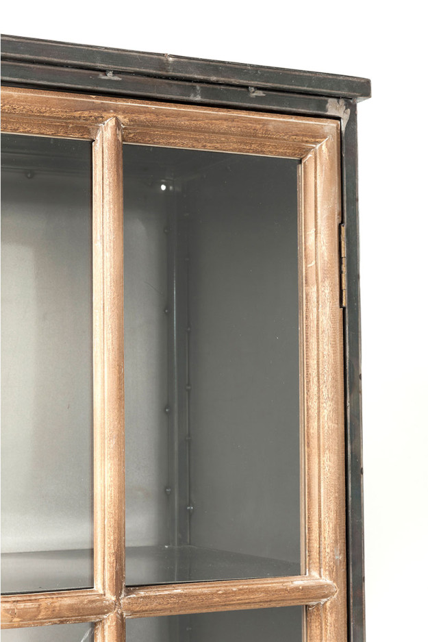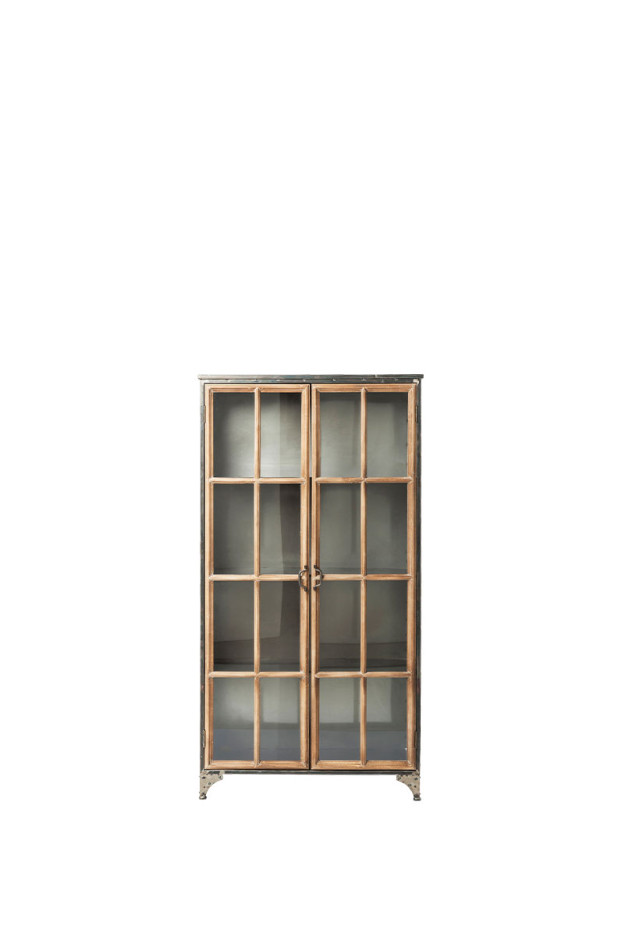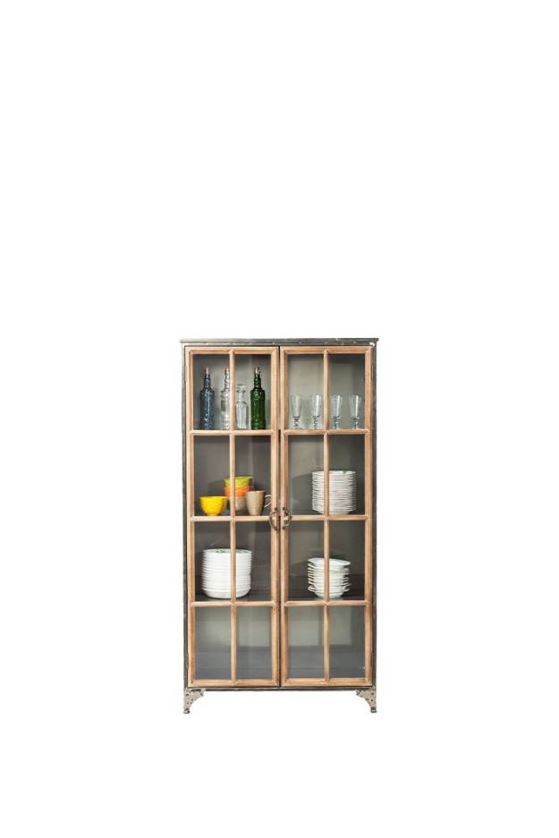 La vitrina Kontor tiene un marcado estilo industrial y sereno. Cuenta con dos puertas y cuatro estantes que garantizan una alta capacidad expositiva. Muestra tus mejores objetos, tu menaje más especial y tus recuerdos en esta exclusiva vitrina realizada en vidrio y acero lacado. Puertas realizadas en madera de abeto lacada. Medidas: 97x39x187 cm.