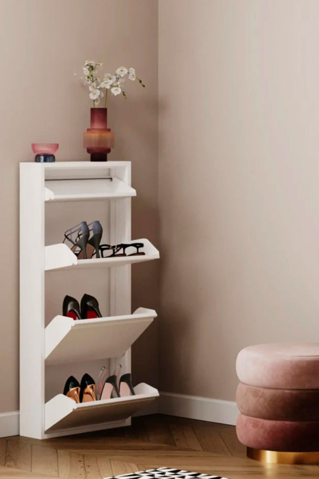 El zapatero Caruso 3+1 combina diseño y funcionalidad inteligente en una solución de almacenamiento compacta y elegante. Cuenta con tres compartimentos que te permiten guardar cómodamente al menos seis pares de zapatos, manteniéndolos siempre ordenados y al alcance. Además, su cajón superior es ideal para esos pequeños objetos que siempre necesitas tener a mano, como llaves, cables o accesorios.